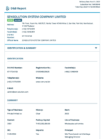 4. D&B Report : D&B is the institute that anylysing the financial of the company that evaluate and grade Sensolution to be AA good financial strength and low risk.